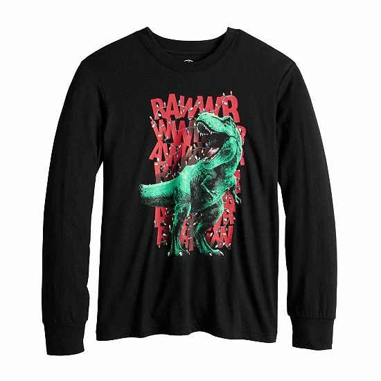 Your super fan will be ready for the Holiday season with this festive and cozy boys’ Celebrate Together Holiday Jurassic Park Rawr tee.