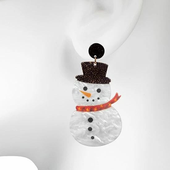 Show off your love of snow with these charming Celebrate Together Acetate Snowman Statement Nickel Free Drop Earrings.
