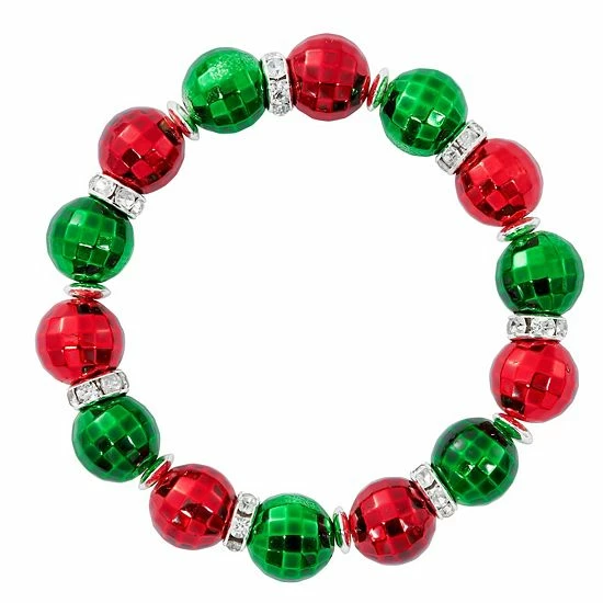 This Celebrate Together Silver Tone Christmas Red and Green Faceted Bead Nickel Free Stretch Bracelet is a holly jolly show stopper.