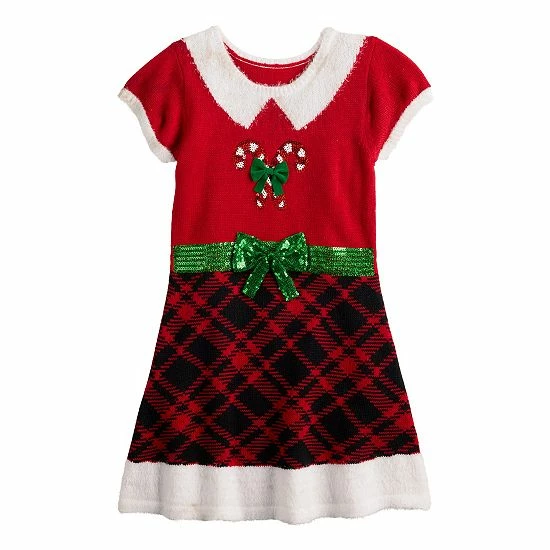 She’ll love to dress up in the seasonal style of this girls’ Celebrate Together fit and flare candy cane Christmas dress.