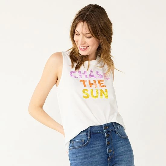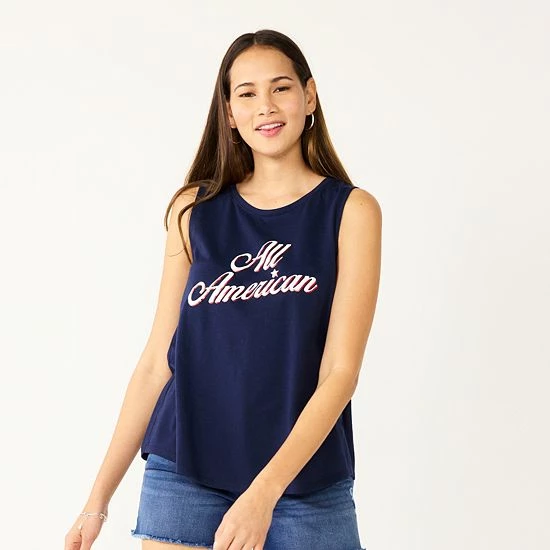You’ll be ready for summer in this women’s Celebrate Together graphic muscle tank top.