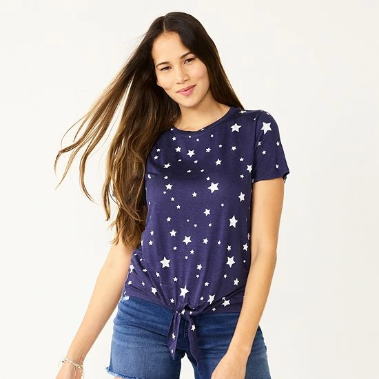 Rock a fun, casual look with this women’s Celebrate Together tie-front tee.